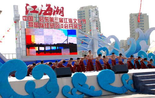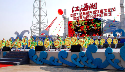 2010年4月27日,由中共启东市委、市人民政府主办的“中国•启东第三届江海文化节暨国际经贸洽谈会”在市广电广场隆重开幕,全国人大、外交部和省市的领导出席了开幕式,来自美国、加拿大、韩国、澳大利亚等10多个国家和国内各省市的300多位中外客商参加了开幕式。开幕式后,中外嘉宾观看了由市文广新局承办、文化馆参与编排的大型文艺演出,整台节目充分展示江海风情,显示了海文化特点,精彩的节目赢得了阵阵掌声。