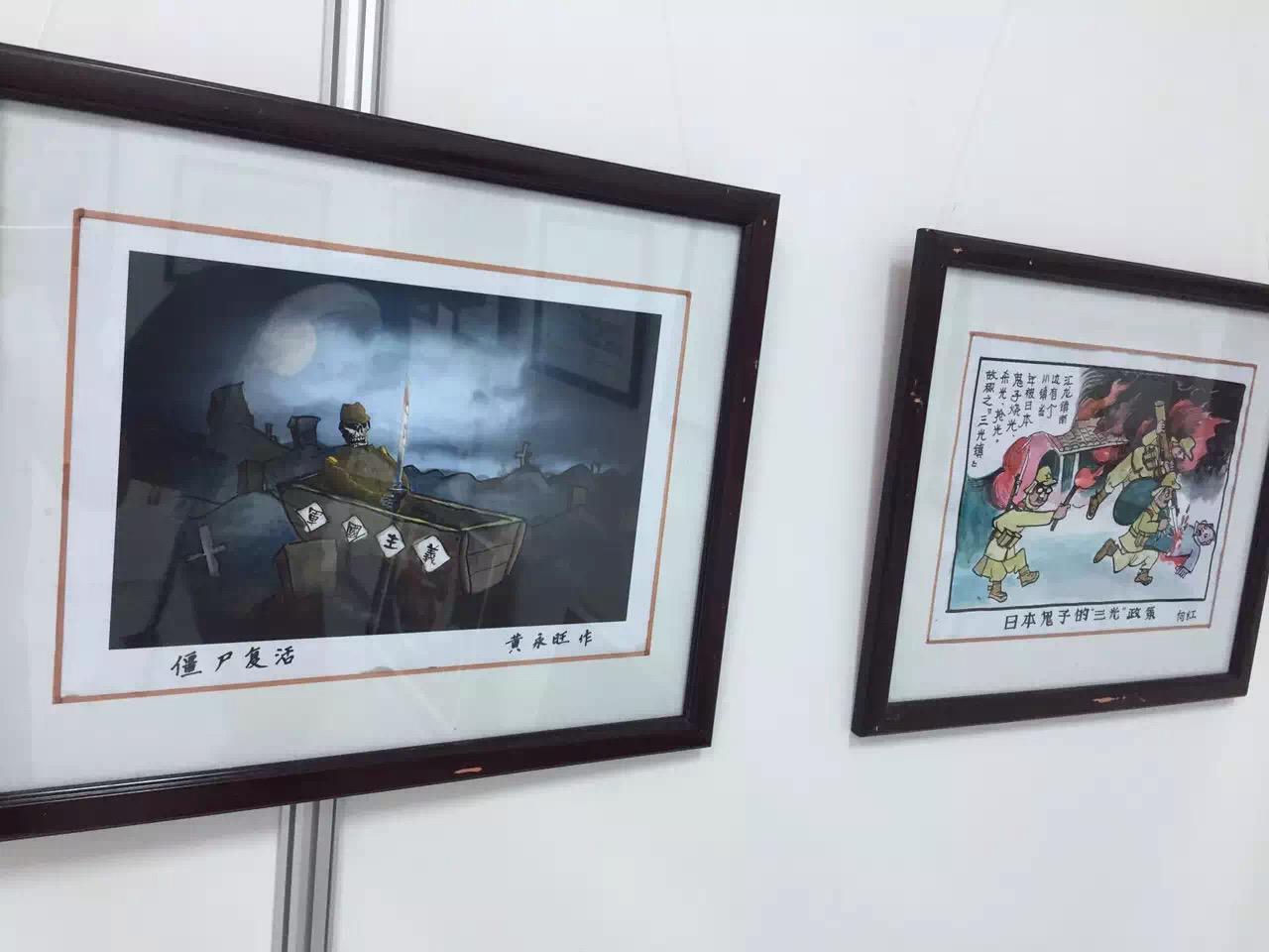启东市文化馆的助理馆员黄永旺作为特约画家,展出了漫画作品《僵尸复活》,表达了年轻一代对历史的铭记和对和平生活的珍惜。
