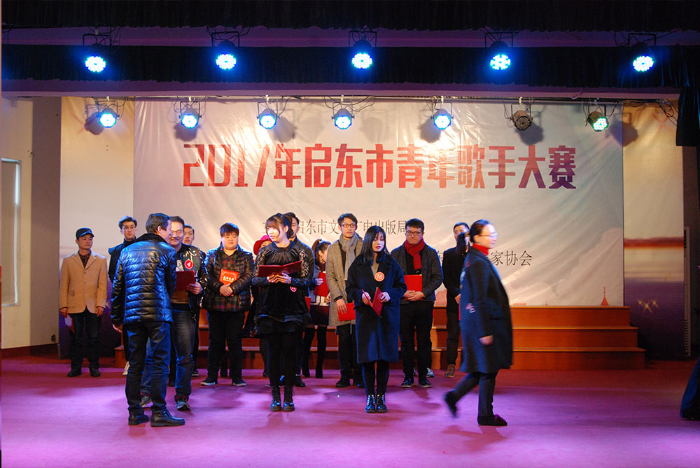 2017年2月7日,启东市青年歌手大赛决赛在文化馆圆满落幕。选手们以妙曼的歌声,打动了台下的评委和观众。经过激烈的竞争和公正的评比,评选出一等奖、二等奖、三等奖和优秀奖。选手们的表演,赢得台下观众阵阵掌声,气氛热烈。演唱的曲目有《父亲》、《悟空》、《野子》、《望乡》等。
