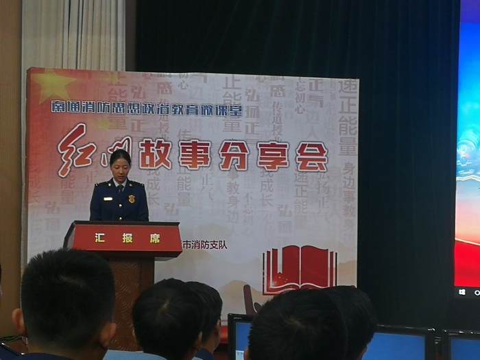 文化馆黄琴、尹一玲于4月24日上午前往南通消防大队参加“红门故事分享会——践行训词精神 彰显典型风采主题教育实践讲述活动”,出演小品《登记》。